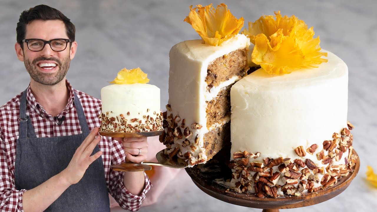This delightful hummingbird cake with tropical notes of pineapple and banana is just so dreamy and delicious. I love the tanginess of the cream cheese frosting complementing a spiced cake with the crunch of toasted pecans; basically it has everything!
