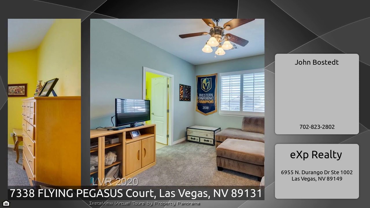 The Virtual Tour for the property at 7338 FLYING PEGASUS Court, Las Vegas, NV 89131 listed for $748,888: Other homes for sale by John Bostedt of eXp Realty: Wow…Absolutely Gorgeous Home with huge open & airy rooms, upgrades galore, Custom Shutters throughout, 2 separate Dens with French Doors, Large 5th bedroom with full bath downstairs, beautiful upgraded wood like laminate floors, separate planning desk in Gourmet Kitchen with 42" cabs, huge custom counters with breakfast bar,granite tops,pantry and dinette eating area, Formal Dining Room, Large Casita w/built in Murphy Bed, Pool w/spa, 10+!