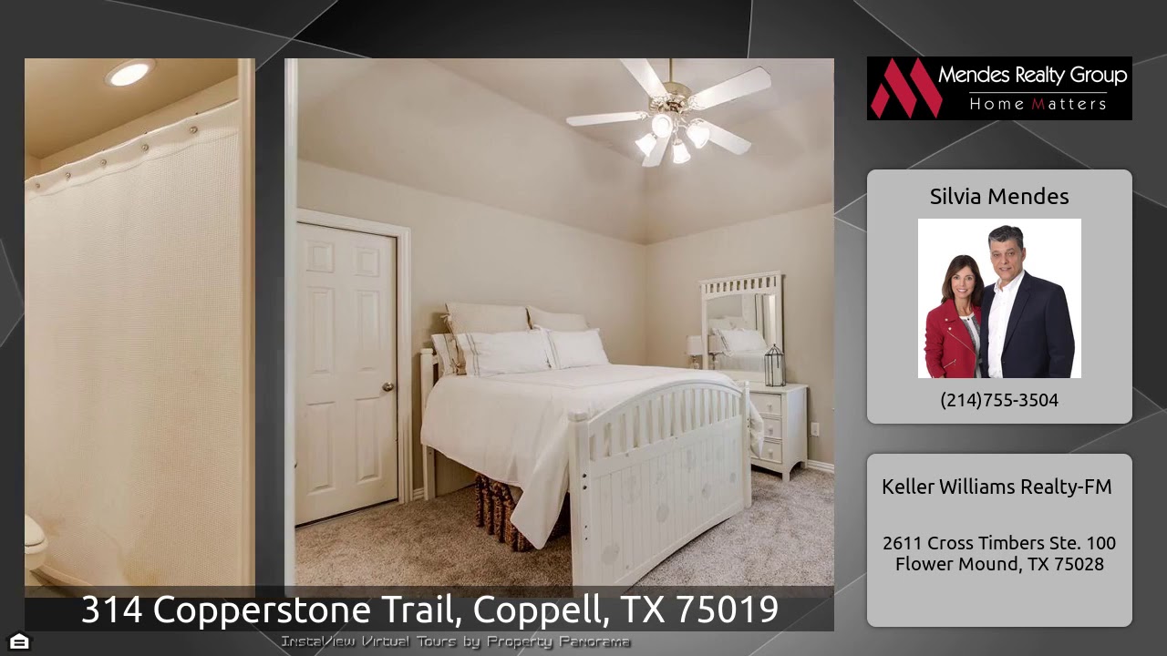 The Virtual Tour for the property at 314 Copperstone Trail, Coppell, TX 75019 listed for $590,000: Other homes for sale by Silvia Mendes of Keller Williams Realty-FM: You’ll love this gorgeous home on the family-friendly Copperstone subdivision next to the cul-the-sac, backing up to Andy Brown West park. Open the door to a high ceiling grand entryway w circular staircase, study w French doors. Spacious bright kitchen w granite countertops, stainless steel appliances, gas cooktop, island, open to large family room, breakfast nook and formal dining room. 4 bedrooms and 3 ½ baths and game …