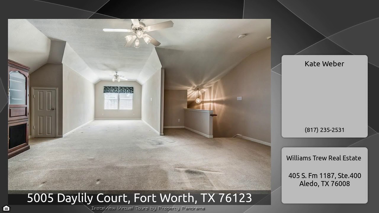The Virtual Tour for the property at 5005 Daylily Court, Fort Worth, TX 76123 listed for $339,900: Other homes for sale by Kate Weber of Williams Trew Real Estate: Adorable, meticulously maintained one-owner home in Fort Worth's Hulen Heights! Entry welcomes you into large foyer with tall ceilings, private study with french doors, & oversized formal dining area. Open floor plan includes beautiful eat-in kitchen overlooking living area with custom built-ins & fireplace. Master suite boasts oversized bedroom with seating area & bay windows, jetted bathtub, separate shower, & huge walk in …