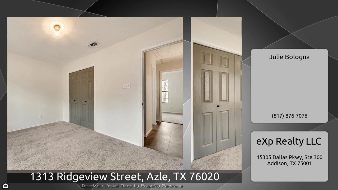 The Virtual Tour for the property at 1313 Ridgeview Street, Azle, TX 76020 listed for $319,900: Other homes for sale by Julie Bologna of eXp Realty LLC: Stunning Farm House in highly desirable Azle neighborhood! This beauty features interior & exterior paint, rich wood look flooring, updated fixtures & more! Marvel at the abundance of natural light & charm upon entering! Living room is very inviting & features great lighting & stunning French doors! Dining area flows seamlessly with kitchen as is complemented by new designer cabinets! Kitchen boasts brand new stainless steel appliances & …