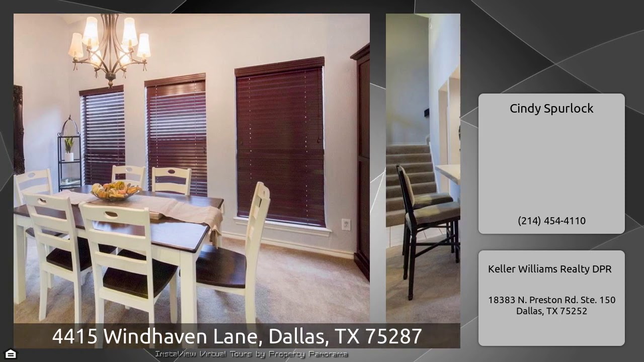 The Virtual Tour for the property at 4415 Windhaven Lane, Dallas, TX 75287 listed for $349,900: Other homes for sale by Cindy Spurlock of Keller Williams Realty DPR: BEAUTIFUL HOME FEATURING HEATED SALTWATER POOL, SPA & GAZEBO AND LARGE PLAY YARD IN HIGHLY SOUGHT-AFTER NORTH DALLAS & PLANO SCHOOLS! Spacious floorplan with first floor master suite, large family rm with vaulted, beamed ceiling & painted brick fp, dining rm, bright kitchen with breakfast rm overlooking backyard pool & spa, large second floor living area with french doors & 2 additional second floor bedrms. Recent updates …