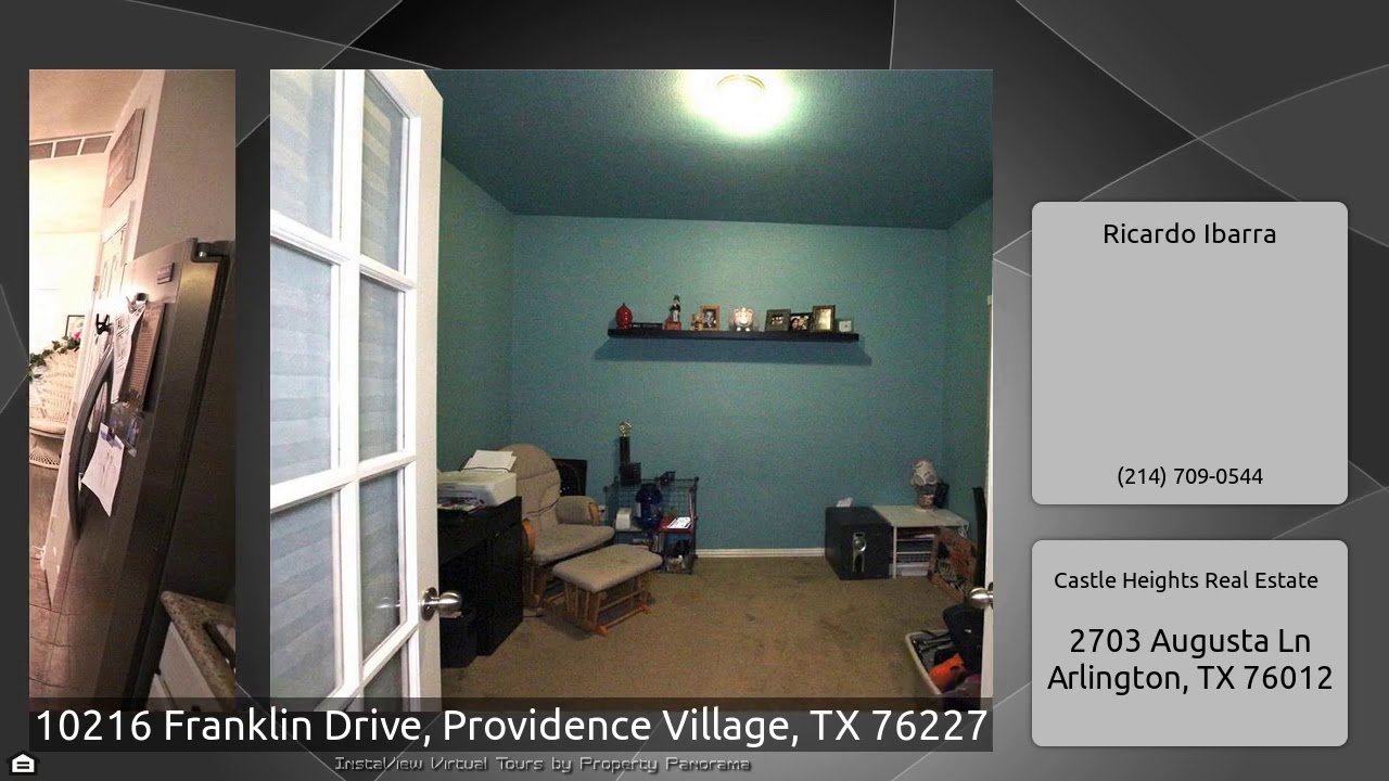 The Virtual Tour for the property at 10216 Franklin Drive, Providence Village, TX 76227 listed for $239,900: Other homes for sale by Ricardo Ibarra of Castle Heights Real Estate: Great home in the heart of Providence Village! Walking distance to elementary school, less than a block away from main park, waterpark, main amenity center, walk to restaurants and grocery store! Incredibly well located home with amazing curb appeal, features granite countertops, stainless steel appliances and large open living room with high ceilings! Downstairs features an office with french doors, formal dining, …