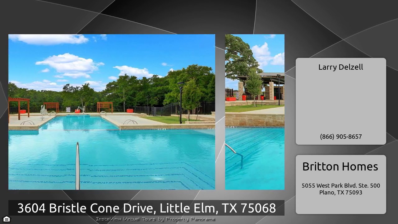 The Virtual Tour for the property at 3604 Bristle Cone Drive, Little Elm, TX 75068 listed for $449,900: Other homes for sale by Larry Delzell of Britton Homes: PERRY HOMES NEW CONSTRUCTION! Library with French doors welcomes at the entry. Wood-look ceramic tile floors. Media room with French doors. Formal dining room. Kitchen features a large island with built-in seating, abundant counter top space, stainless steel and breakfast nook. Family room has a wall of windows and fireplace. Private master bedroom features 13-foot ceilings and three large windows. Double doors lead to master bath …
