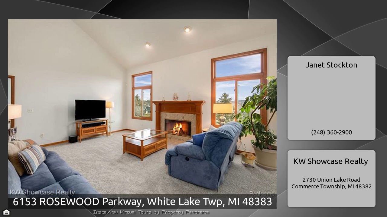 The Virtual Tour for the property at 6153 ROSEWOOD Parkway, White Lake Twp, MI 48383 listed for $314,900: Other homes for sale by Janet Stockton of KW Showcase Realty: Spacious two-story with first floor Master Suite and finished Lower Level Walk-out is situated on a large, gently sloping lot in desirable Whispering Meadows. A quaint covered porch leads to a Foyer with vaulted ceiling and coat closet. Great Room features a two-story vaulted ceiling with fan and fireplace with granite surround and wood mantel. Formal Dining Room with gorgeous French doors and box out window. Island Kitchen …