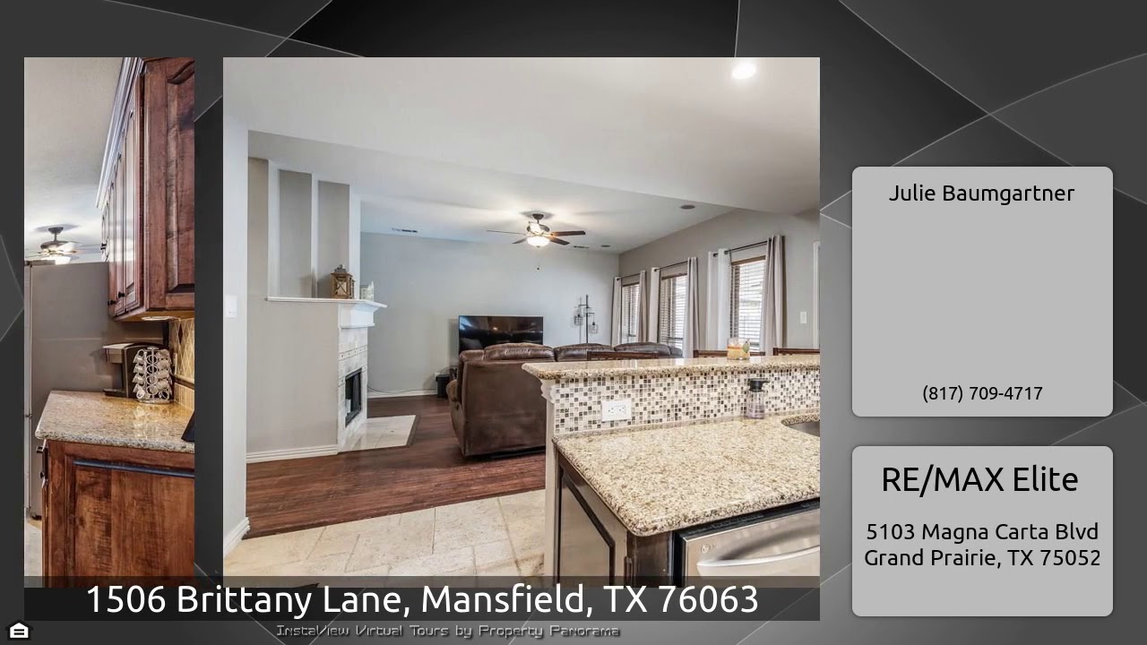 The Virtual Tour for the property at 1506 Brittany Lane, Mansfield, TX 76063 listed for $340,000: Other homes for sale by Julie Baumgartner of RE/MAX Elite: Beautiful home where the pride in ownership shines. Floor plan provides a space for almost every need for any buyer. 5 bedrooms, 3 full baths, 2 living, 2 dining and on a lot that just keeps giving. First floor full bath freshly remodeled in January 2020, no expense spared. This is a MUST SEE!!! Gorgeous reclaimed hand hewn hardwood flooring in living room, granite countertops, updated kitchen with island, 20k in landscaping, french …