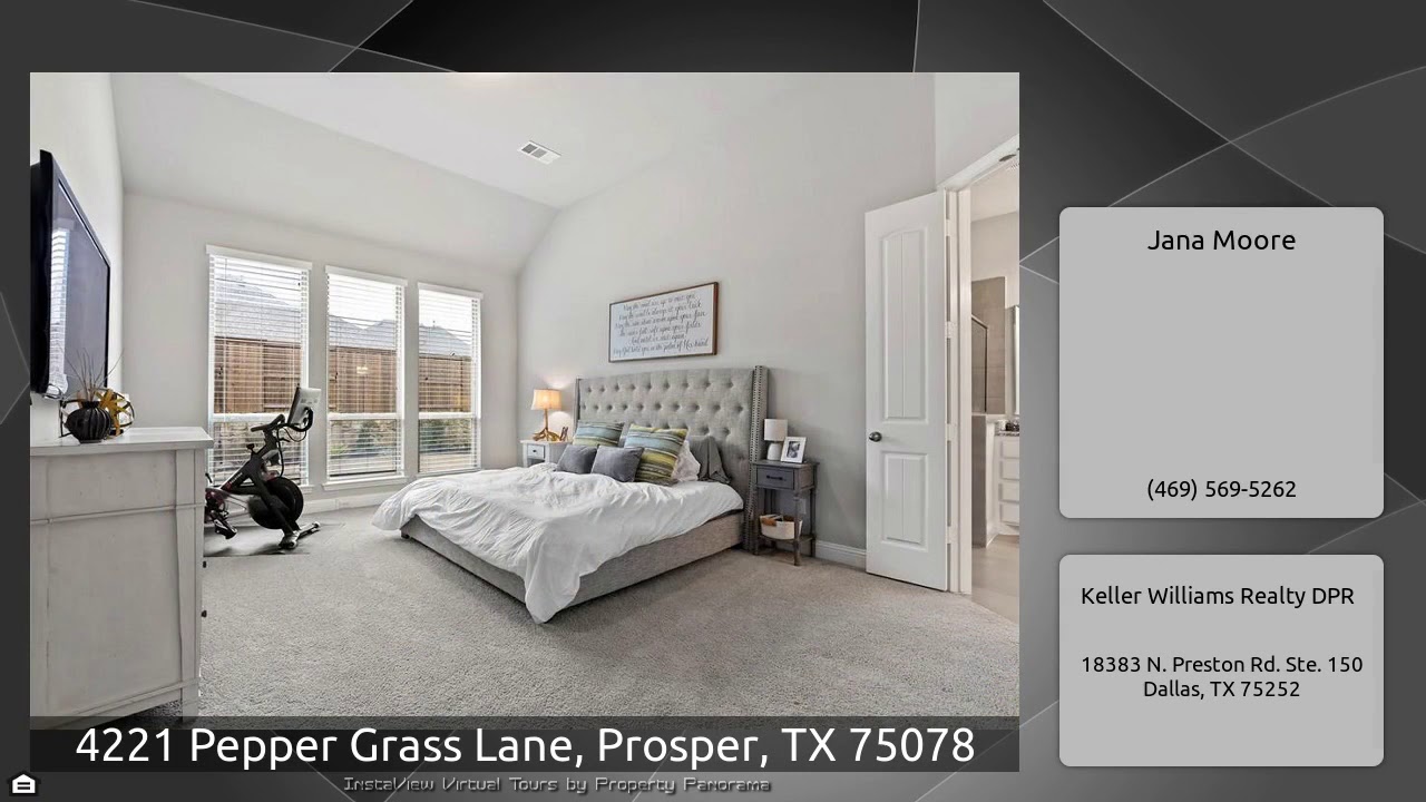 The Virtual Tour for the property at 4221 Pepper Grass Lane, Prosper, TX 75078 listed for $475,000: Other homes for sale by Jana Moore of Keller Williams Realty DPR: Windsong Ranch Beauty! Why build when you have a spotless one story home within steps from the lagoon? Beautiful open, light and bright with flowing floor plan. Walk into entry with hardwoods and study with French doors. Great size dining room with plenty of space to host family dinners. Gourmet kitchen with an abundance of counter and cabinet space. This kitchen is fully loaded with upgraded granite, back splash, gas …