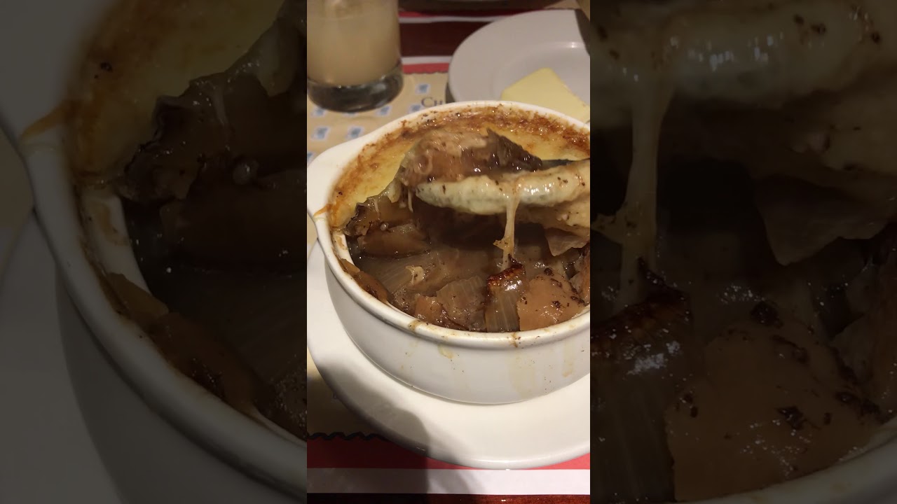 French onion soup at Les Chefs de France in Epcot camera phoneChefsCuisineDiningEpcotFrancefreeFrenchfrench cuisineFrench diningLESonionsharingSoupuploadVideovideo phoneVlogYouTube