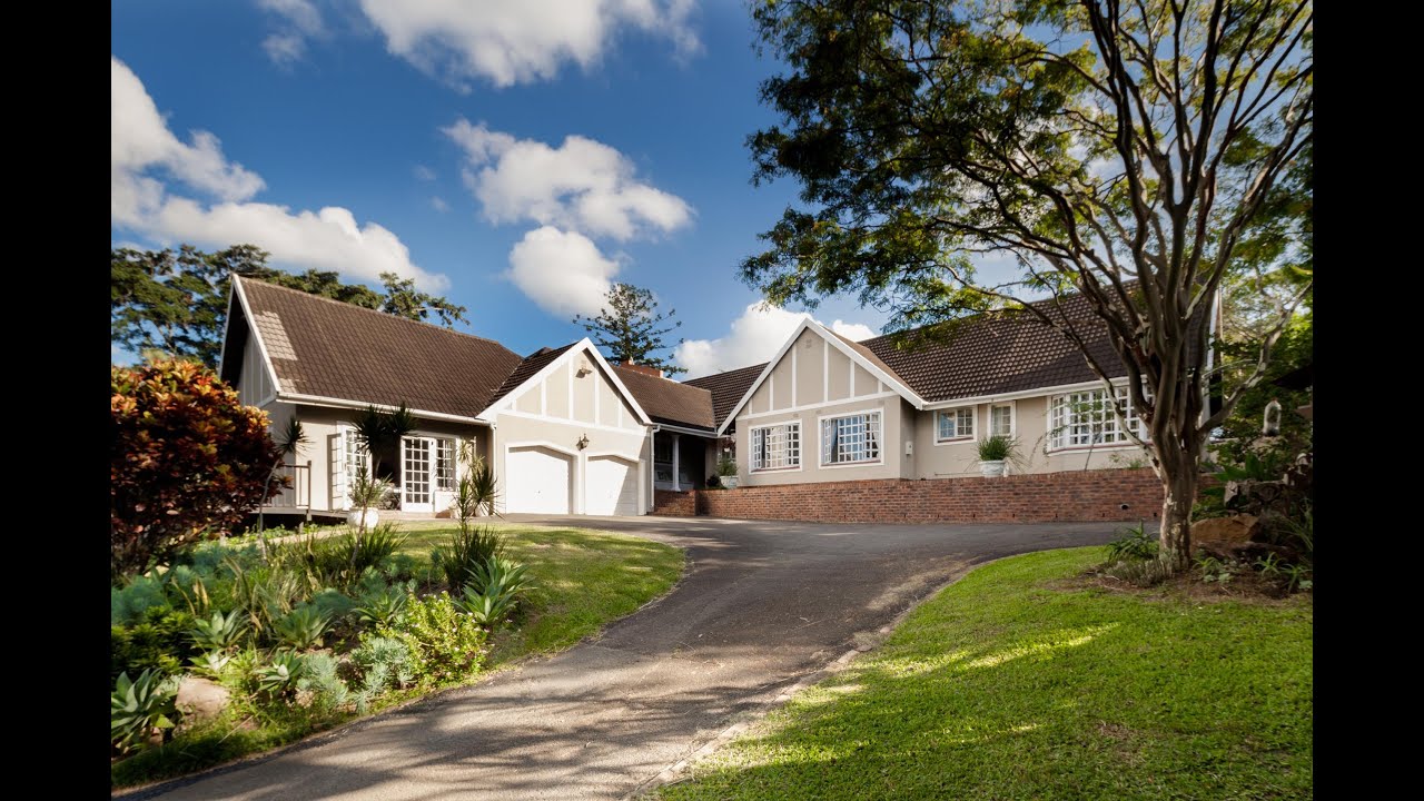 Located down a boomed access-controlled road on a rise overlooking the tree-lined suburb of Cowies Hill, the house comes with just the right character accents – decorative pitched gables, white-framed cottage pane windows and a delightful stoep which bids you welcome to the front of the home and invites you to rest awhile under its cool eaves. From here, the front door opens into a foyer accessing the different sections of the residence. The living areas are harmonised by stylish blue-tinted wall colour, white-washed wood-panelled ceilings, arched entryways and tiled flooring that runs throughout.
