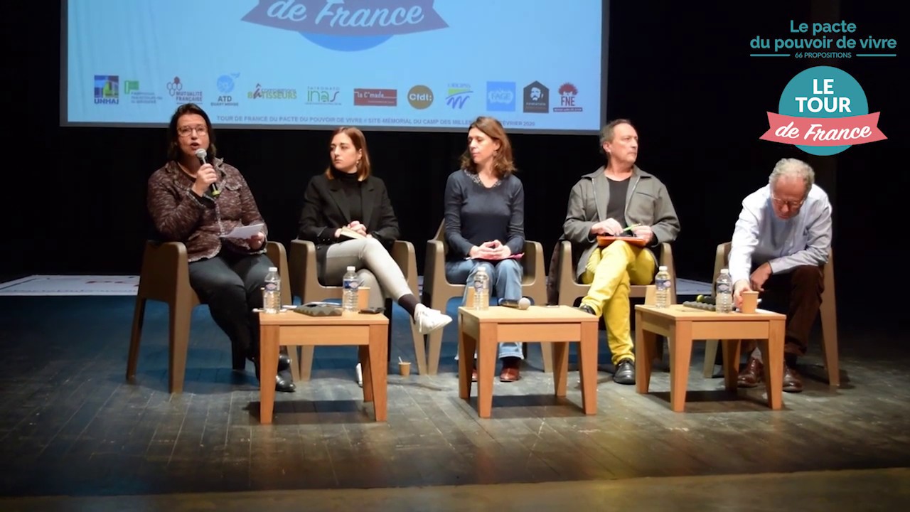 Etape aixoise du Pacte de Pouvoir de Vivre du 6 février 2020 au Camp des Milles. Table ronde de présentation de certaines mesures du pacte par Orlane François Présidente de la FAGE, Claire Hédon Présidente d’ATD Quart Monde, Jean-David Abel Vice-Président de France Nature Environnement (FNE) et Christophe Deltombe Président de la CIMADE. Chacun revient sur la genèse du pacte et présente un des 66 mesures du Pacte..plus d’info sur le www.pactedupouvoirdevivre.fr