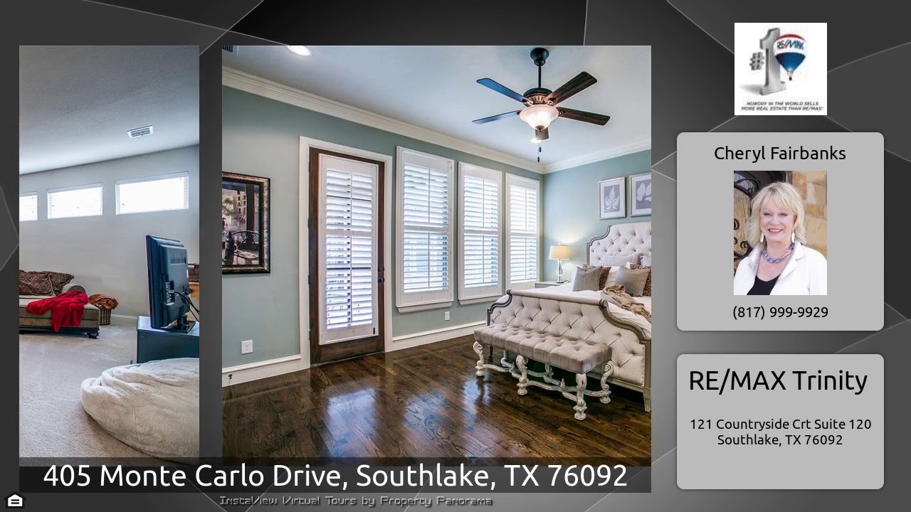 The Virtual Tour for the property at 405 Monte Carlo Drive, Southlake, TX 76092 listed for $810,000: Other homes for sale by Cheryl Fairbanks of RE/MAX Trinity: Immaculate almost new Grand Villa on pool-sized lot. Home has been re-built on most of interior due to Lightning strike 7.10.19. Beautiful new hardwood floors, all cabinets, appliances. New carpet, roof, gutters, HVAC. 3 BR+ study down. Lg dining room, high ceiling in family room. Wonderful large utility room, split master privately located. French doors from mstr BR, dining rm. Wall of windows in family rm all view covd patio. …