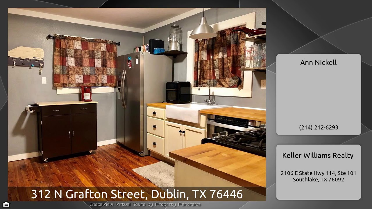 The Virtual Tour for the property at 312 N Grafton Street, Dublin, TX 76446 listed for $84,900: Other homes for sale by Ann Nickell of Keller Williams Realty: Adorable remodeled, magnolia-style home! The living and dining room feature original shiplap walls. The kitchen has butcher block counters, open iron and wood shelving, and a farmhouse sink. French doors open to the large master bedroom. Both bedrooms are large with original doors from the house used as sliding barn doors for the closets. There is decorative lighting and wood flooring throughout. Enjoy relaxing on the big front porch …
