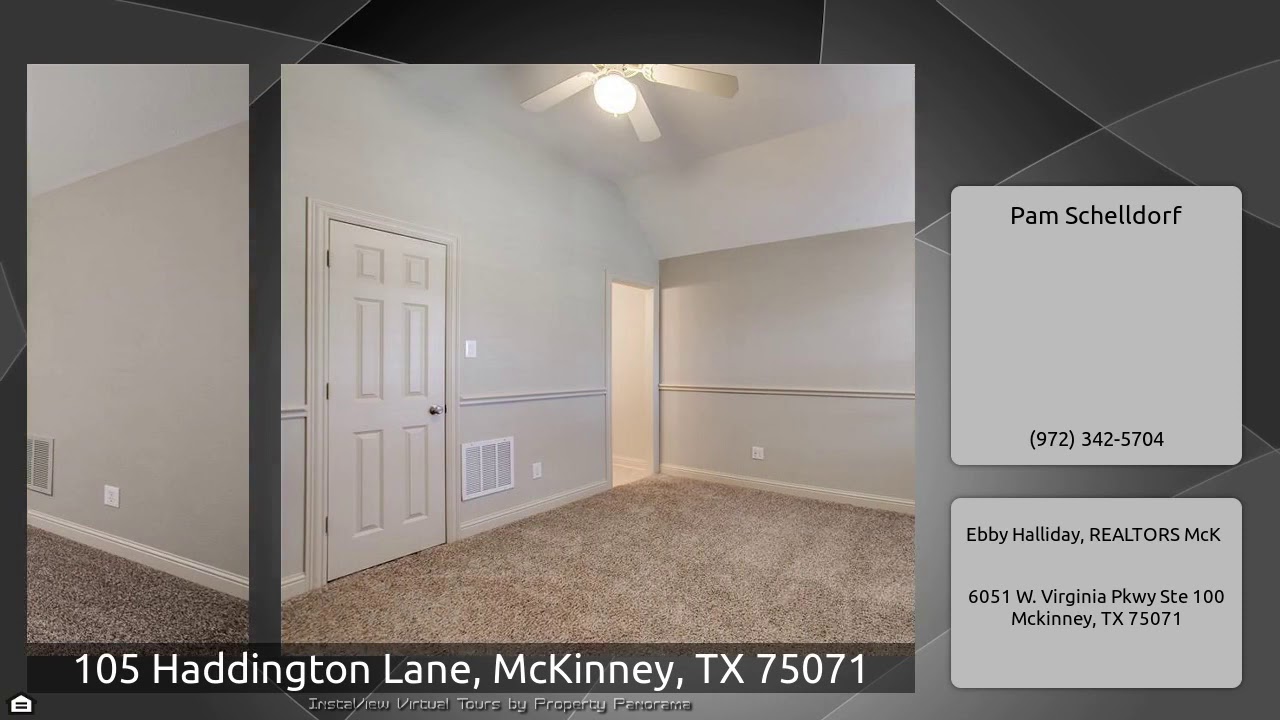 The Virtual Tour for the property at 105 Haddington Lane, McKinney, TX 75071 listed for $825,000: Other homes for sale by Pam Schelldorf of Ebby Halliday, REALTORS McK: Beautiful Sanders Custom Home on hard-to-find private .64 acre golf course lot! Backyard paradise with pool, spa, built-in gas grill, smoker, and fire pit. Amazing views overlooking 3rd fairway of Stonebridge Dye Course. Great 2 story floor-plan with 5 bedrooms, 4 full baths, study, family room with vaulted cedar plank ceiling, stone fireplace, and wall of windows, formal dining with French doors onto patio. Gourmet updated …