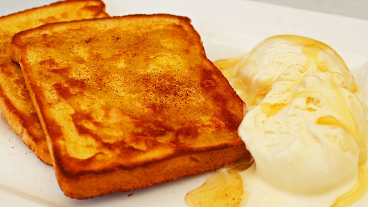 French toast is one of my favourite breakfasts. Please enjoy my easy recipe to make the sweet version. Of course, feel free to substitute the ice cream and honey for your favourite toppings. Give it a go!