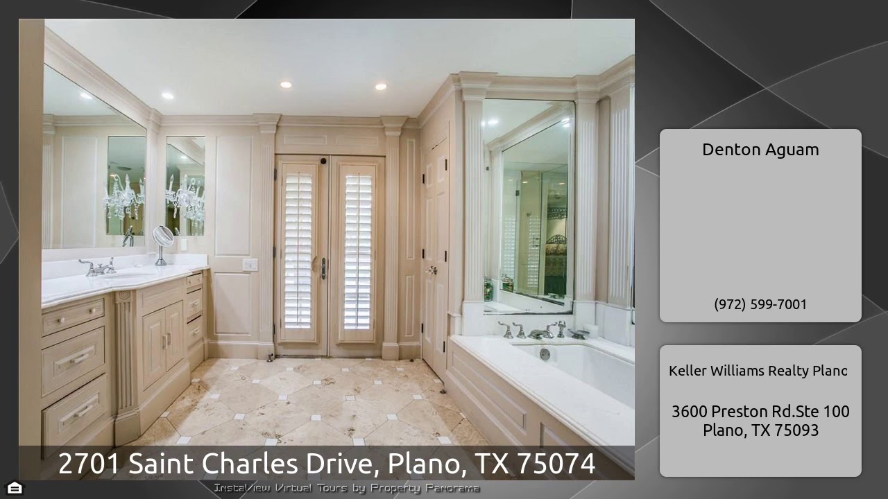 The Virtual Tour for the property at 2701 Saint Charles Drive, Plano, TX 75074 listed for $599,000: Other homes for sale by Denton Aguam of Keller Williams Realty Plano: Exquisite, private and tranquil-an elegant custom home on a half acre lot in Plano. Spacious formal living & dining flank either side of the foyer. Main living space has open concept living, kitchen & nook that overlooks a gorgeous backyard & backs up to a lush creek. The view is enhanced by a wall of windows & french doors. Kitchen features Viking appliances incl. sub-zero fridge & double oven, pot filler, marble island …