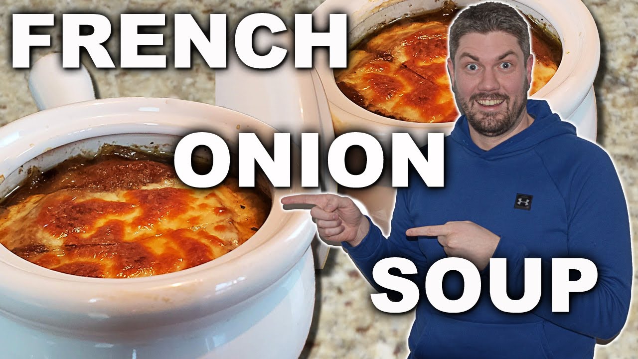 This is an easy french onion soup recipe (with croutons) that you can make for a delicious appetizer, or a satisfying lunch. In this video Jamie starts out doing his things, then throwing over to Marc who takes it the rest of the way. This is a great meal to make in bulk and freeze to use later, and great for vegetarians!. We used toasted baguette as our croutons and mozzarella cheese (use Gruyere if you have it for a more classic taste). We think this might be the best french onion soup recipe you’ve ever tried