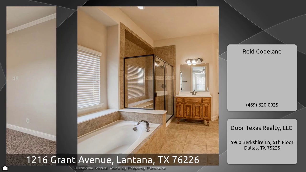 The Virtual Tour for the property at 1216 Grant Avenue, Lantana, TX 76226 listed for $409,900: Other homes for sale by Reid Copeland of Door Texas Realty, LLC: Welcome to this well-maintained 4 bed, 3.5 bath home in Lantana! Beautiful wood floors throughout entry and living room. Lovely custom touches like french doors to the office and a window seat in the formal dining room make this house extra special! You'll love the open concept living room that flows into the kitchen featuring breakfast bar, solid stone countertops, and a built-in desk! The downstairs master has an en-suite bath …