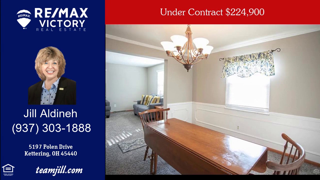 Under Contract $224,900 🤞🎉🎉😀❤️❤️ 5197 Polen Drive, Kettering, OH 45440 to #SellYourHouse Call 👉 #JillAldineh 👈 #REMAXVictory ☎️(937) 303-1888. Charming, spacious brick & vinyl 2 story Colonial in quiet Kettering neighborhood. Wide plank pegged hardwood floors & new carpet throughout plus freshly painted interior. Formal living/dining (wainscot paneled walls.) Nest thermostat. Eat-in kitchen features oak cabinets, matching appliances & recessed lighting. Convenient 1/2 bath on main level. Cozy family room has full brick wall, wood burning fireplace w/insert & french doors leading to covered back patio. Fully fenced back yard houses a basketball court. Upper level offers 3 bedrooms, full bath & large owner suite w/double vanity sinks in the full bath. Lower level has large media room, laundry room & huge storage area. 2 car attached garage w/new opener. This lovely home has a lot to offer-schedule a showing soon! Fireplace/chimney not warranted. 🤞🎉🎉😀❤️❤️ 5197 Polen Drive, Kettering, OH 45440 to #SellYourHouse Call 🤞🎉🎉😀❤️❤️
