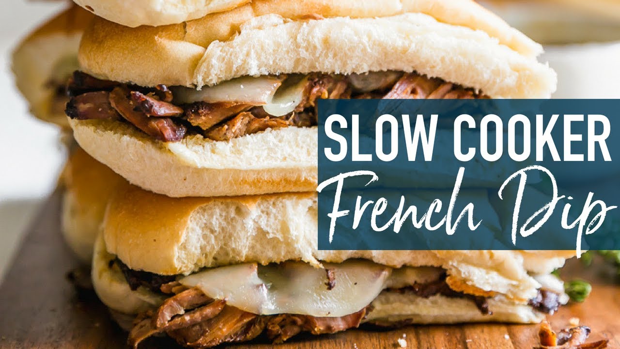 French Dip Sandwich, or French Dip Au Jus, is a delicious and easy way to enjoy crockpot beef! We create a Beef Au Jus sandwich with tender beef, provolone cheese, toasty bread, and of course the dipping sauce. Such a simple crockpot recipe that the entire family will love. This French Dip Sandwich Recipe is a winner!