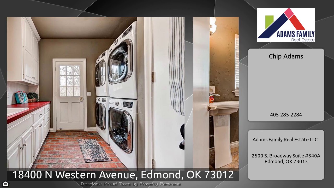 The Virtual Tour for the property at 18400 N Western Avenue, Edmond, OK 73012 listed for $795,000: Other homes for sale by Chip Adams of Adams Family Real Estate LLC: Beautiful Colonial style home on a picturesque 6 acre lot in West Edmond. This 3 story home is the perfect in-town retreat. Walking through the front door, you will see a sweeping staircase that leads to the 5 bedrooms & 4 baths on the 2nd floor. The staircase separates the first floor library/parlor on 1 side and the formal dining room on the other, which features french doors & fireplace. Beyond the dining room is a country …