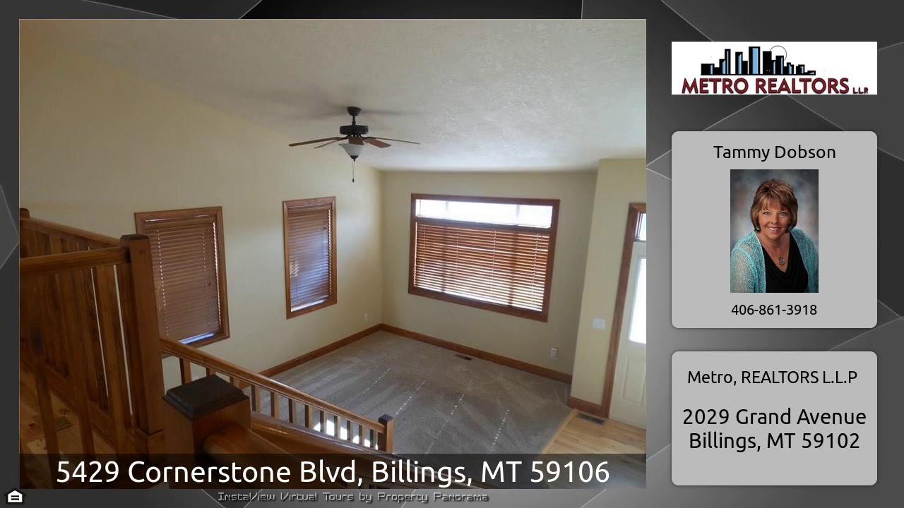 The Virtual Tour for the property at 5429 Cornerstone Blvd, Billings, MT 59106 listed for $320,000: Other homes for sale by Tammy Dobson of Metro, REALTORS L.L.P: Beautiful Home located on the west end of Billings with views of the Rimrocks and backs up to undeveloped park. Large, private Master Suite with double vanities & spacious walk in closet. Huge open kitchen/dining with hardwood floors, breakfast bar & pantry and walk out to deck. Vaulted ceilings, Family room with gas fireplace, Bonus room with French doors. Utility room with counter and sink. Washer and Dryer included. Deck leading to …