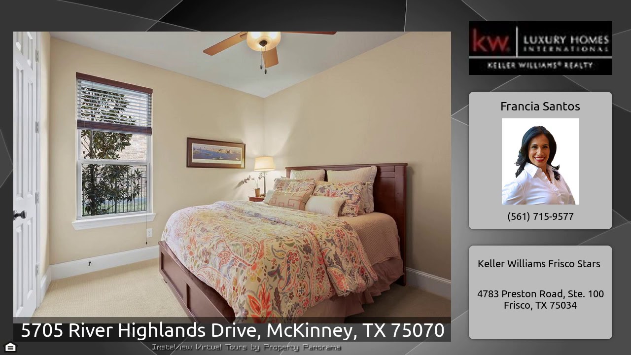 The Virtual Tour for the property at 5705 River Highlands Drive, McKinney, TX 75070 listed for $560,000: Other homes for sale by Francia Santos of Keller Williams Frisco Stars: Meticulously maintained 3-car home with tons of UPGRADES in the Gated Community of the Estates of Craig Ranch in the exemplary Frisco ISD close to Hwy 121. The 1st floor houses the master bedroom, guest suite, breakfast area, formal dining room with gorgeous wood floors throughout , dedicated office w French doors off the entry. Superb Kitchen with large granite island. The kitchen opens to the spacious family room …