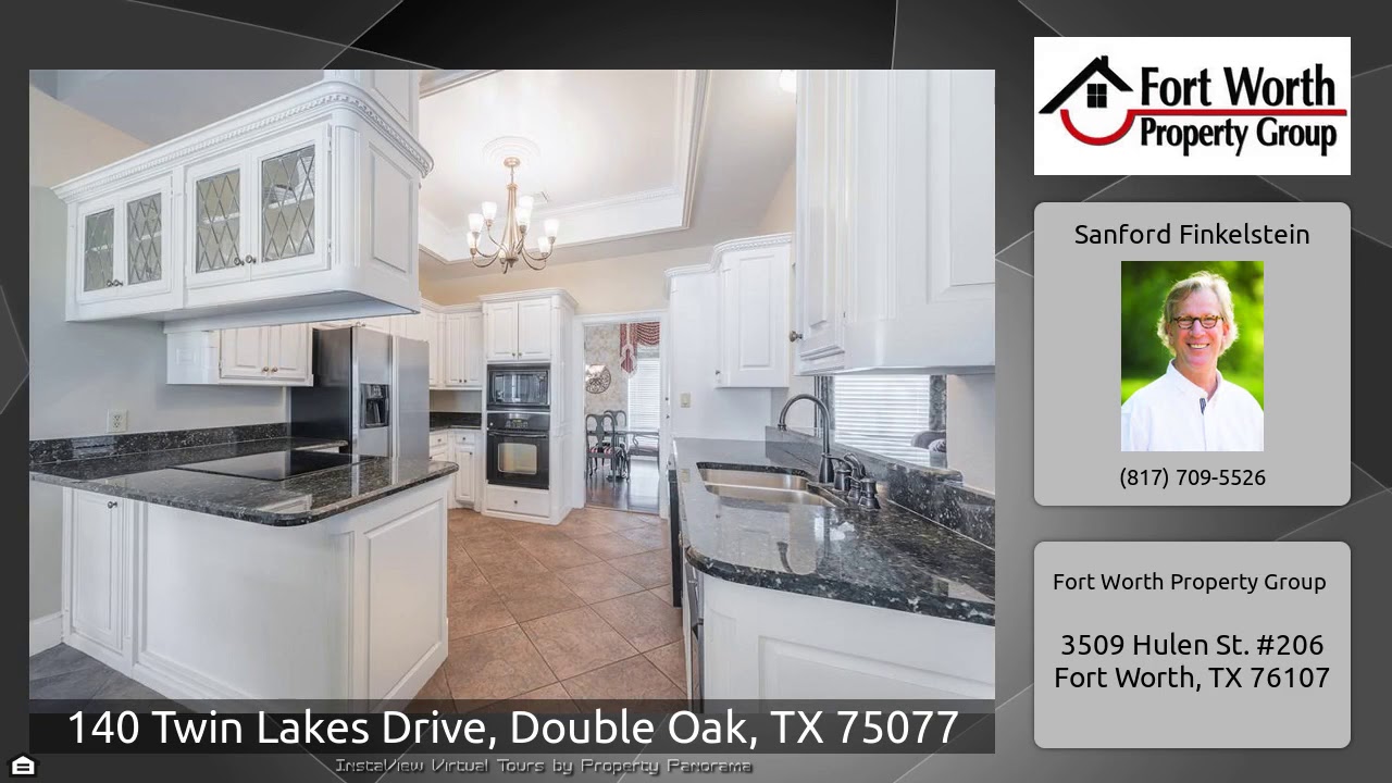 The Virtual Tour for the property at 140 Twin Lakes Drive, Double Oak, TX 75077 listed for $615,000: Other homes for sale by Sanford Finkelstein of Fort Worth Property Group: Colonial style home on pristine parcel of property located in Twin Lakes Estates. You'll love entering the two story grand foyer with curved staircase and extensive wood work. Formal dining room located off of the foyer. The main living room has elegant coiffured ceilings and dual glass French doors leading to the back patio. Updated chef's kitchen with an abundance of cabinetry and granite counter tops. Family room on …