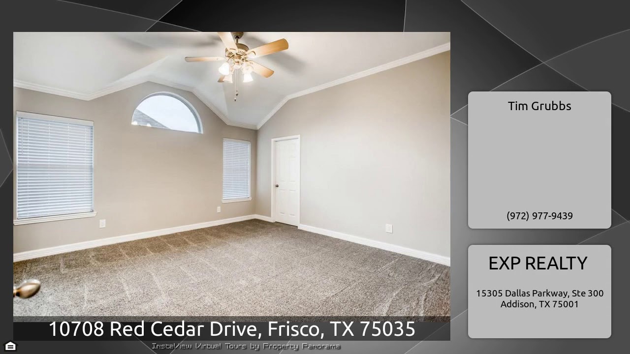 The Virtual Tour for the property at 10708 Red Cedar Drive, Frisco, TX 75035 listed for $2,150: Other homes for sale by Tim Grubbs of EXP REALTY: A ROOM OF THEIR OWN! 4 bedrooms, 2 Full Baths. BRIGHT, OPEN & AIRY with tall ceilings. Combo Formal Living & Dining with Laminate Floors. THE WORKS BEEN DONE! $45,000 Remodel to include Tile plank floors, Crown Molding throughout, New Carpet, Fresh Paint, Granite Countertops, Stainless Steel appliances + Refrigerator. 4th bedroom doubles as a study with French doors. SIT BACK & enjoy evenings on your huge pave-stone back patio. 8' Board-Board …
