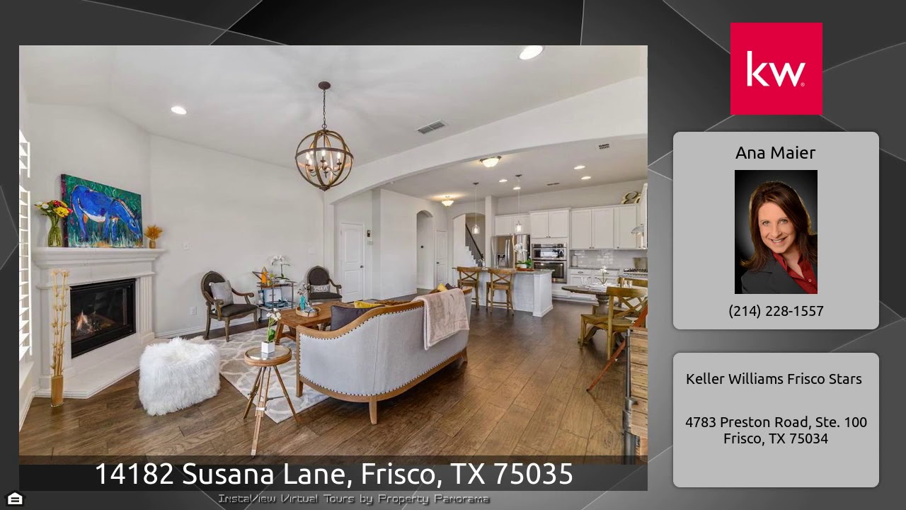 The Virtual Tour for the property at 14182 Susana Lane, Frisco, TX 75035 listed for $389,900: Other homes for sale by Ana Maier of Keller Williams Frisco Stars: 1.5 stories home, extremely clean in master planned Miramonte in Frisco, Prosper ISD. The home displays a study with French doors and formal dining room. Split bedrooms and full bath with granite counters, double sinks and tub glass enclosure. Open concept, integrated kitchen, breakfast and family rooms. Kitchen has white cabinets, granite counters, gas cook-top, vent hood to the outside and SS appliances. Master retreat is bright …