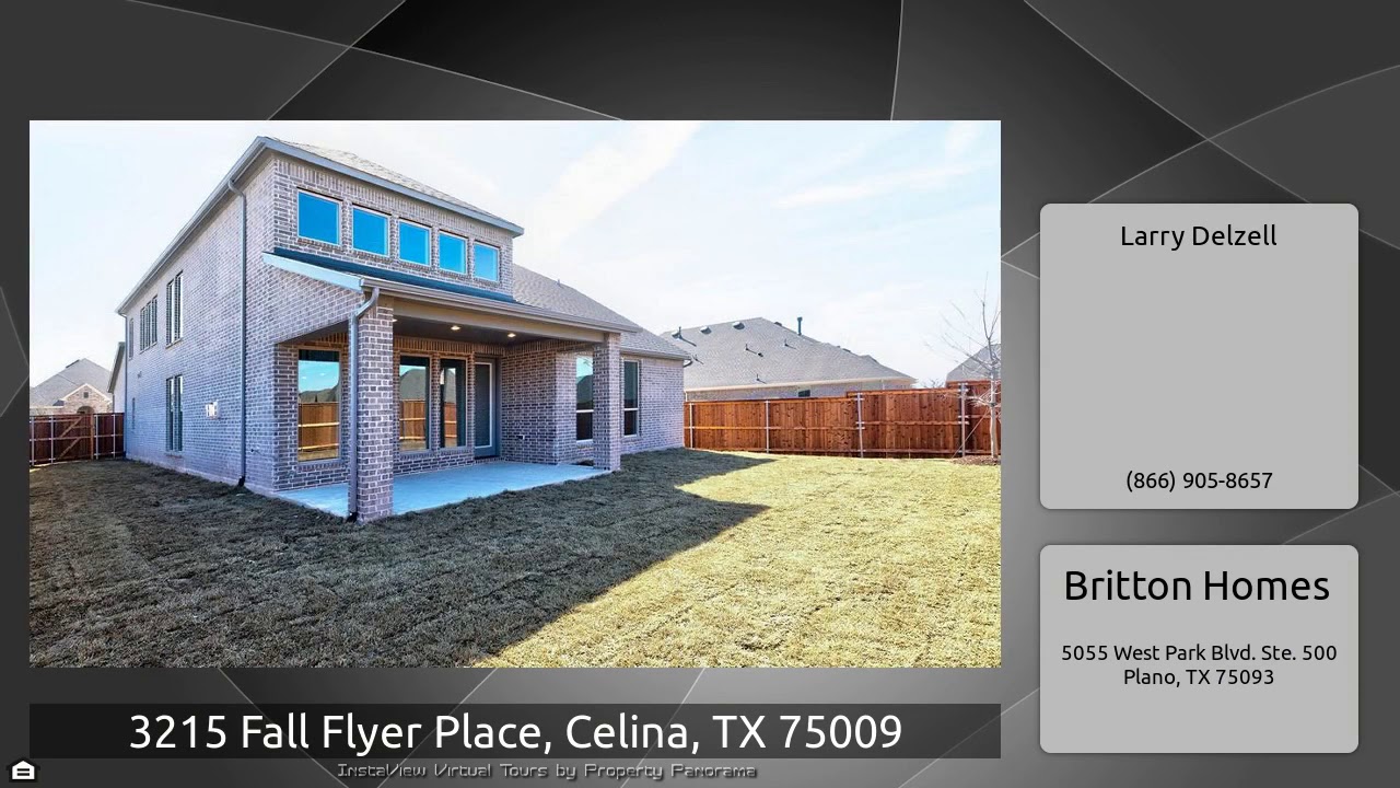 The Virtual Tour for the property at 3215 Fall Flyer Place, Celina, TX 75009 listed for $479,900: Other homes for sale by Larry Delzell of Britton Homes: PERRY HOMES NEW CONSTRUCTION READY FOR MOVE-IN! Two-story entry welcomes with 19-foot ceilings. Library with French doors. Kitchen features a large pantry and a island with built-in seating space. Two-story dining area opens to family room with four large windows and wood mantel fireplace. Ceramic tile floors throughout. Private master bedroom. Double doors lead to master bath with dual vanities, a large garden tub, a separate glass …
