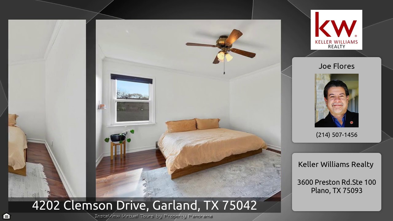 The Virtual Tour for the property at 4202 Clemson Drive, Garland, TX 75042 listed for $252,900: Other homes for sale by Joe Flores of Keller Williams Realty: Absolutely charming two story traditional with modern updates throughout. Once inside you'll notice french doors leading into the study and elegant dining room highlighted by beautiful wainscoting. This 4 bedroom, 2.5 bath home offers ample space for entertaining in the large living area with sliding door leading to patio. The gorgeous kitchen has been updated with granite counter-tops, 4 burner gas cook-top and farm sink. The upstairs …