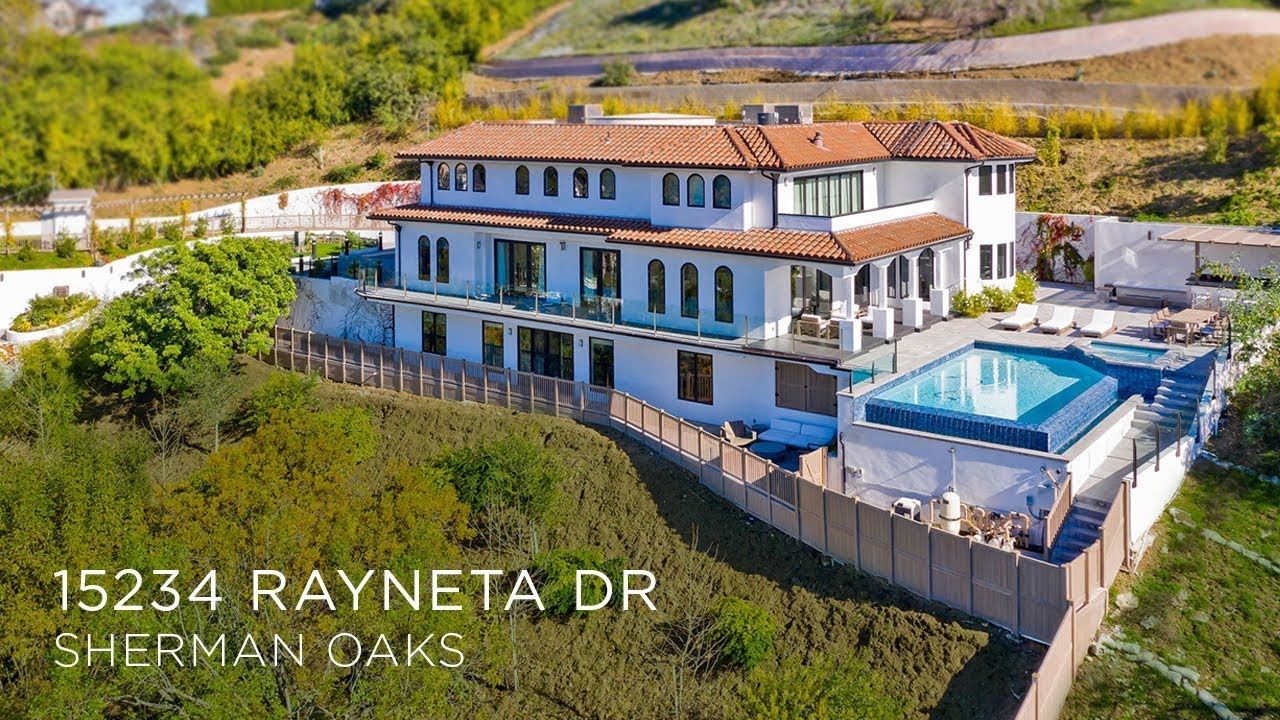 Breathtaking & built atop an ultra-private promontory, this recently constructed three-story Contemporary Mediterranean masterpiece in Sherman Oaks offers roughly 8,500-square-feet of bliss. Access the 5 bed/8.5 bath gated estate using a private road leading to an impressive entryway. Experience some of the best sights in the Valley with explosive 180-degree canyon & city light views, a stunning infinity edge pool, an outdoor kitchen with brand-new wood-burning pizza oven & a wrap-around balcony. A wealth of windows & French doors span the home providing seamless transitions from indoor to outdoor space with an abundance of natural light.