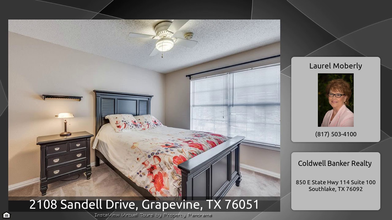 The Virtual Tour for the property at 2108 Sandell Drive, Grapevine, TX 76051 listed for $475,000: Other homes for sale by Laurel Moberly of Coldwell Banker Realty: Best of all worlds! Exemplary Carroll ISD and close to Grapevine Lake. This 4 bedroom 2.5 bath home has beautifully remodeled kitchen with granite counter tops and stainless appliances. Spacious family room with soaring ceilings, wood floors and gas log fireplace welcomes everyone just off of the kitchen. A combo living and dining room with crown molding , half bath and a wood paneled study w french doors complete the downstairs. …