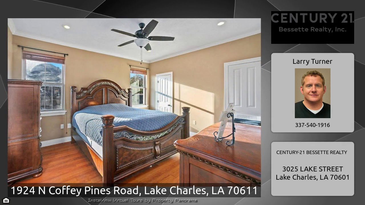 The Virtual Tour for the property at 1924 N Coffey Pines Road, Lake Charles, LA 70611 listed for $254,500: Other homes for sale by Larry Turner of CENTURY-21 BESSETTE REALTY: One owner home in Moss Bluff. Three bedrooms and two full baths with a split floor plan. Living room has corner fireplace. Kitchen and dining are open and spacious. Kitchen features handsome wood cabinetry and center island with eat in breakfast bar. There are granite counter tops and stainless steel appliances. French doors off dining area lead to large covered patio overlooking inground pool and hot tub. The backyard is …