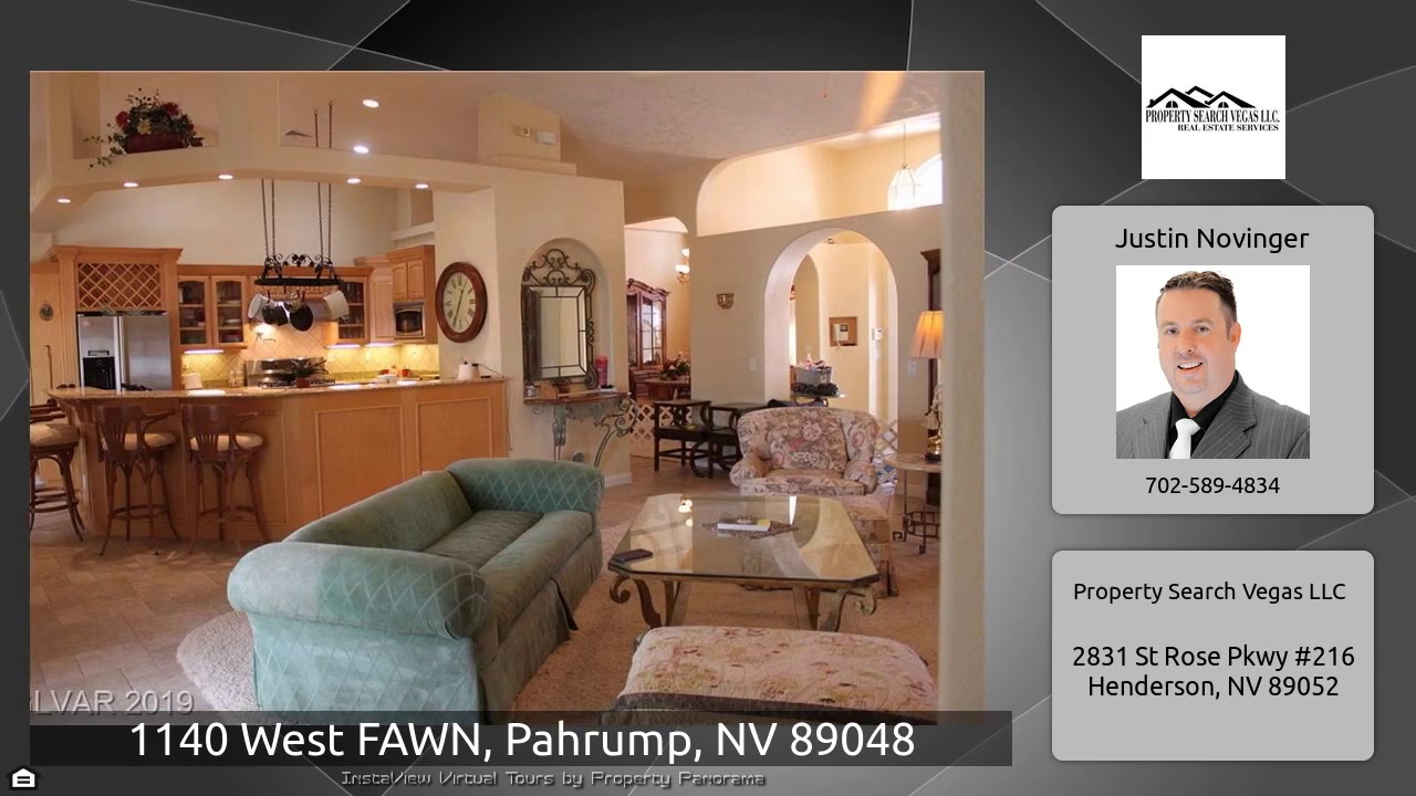 The Virtual Tour for the property at 1140 West FAWN, Pahrump, NV 89048 listed for $365,000: Other homes for sale by Justin Novinger of Property Search Vegas LLC: Beautiful Spacious 1.2 ACRE CUSTOM 3 Bedroom, 3 Bath home plus 1 Bathroom CASITA!!! Double side gated! Huge landscaped yard with patio and desert oasis get away out your back door. Spacious open floor plan and 3 car garage! Private entry way with French doors throughout. Custom Arch Ways Throughout! Chef Kitchen and formal and non-formal dining! Millions dollar living for a small price. Large master bedroom and huge master bath double …