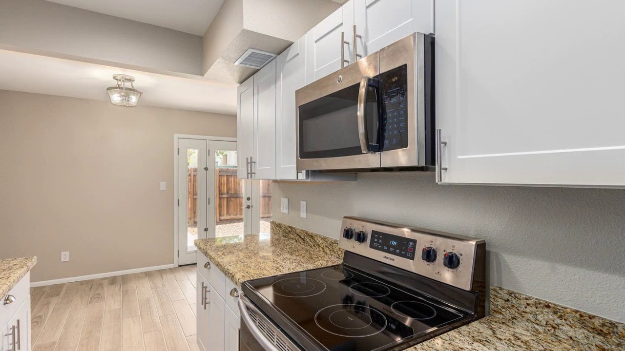 Stunning Remodeled Patio Home in Olive Green Villas. Beautiful wood plank tiled floor, welcoming palette, ceiling fans & French doors to patio from dining area. Granite kitchen counters, under-mount sink, blk appliances, & white cabinets w/hardware. Plush carpet in both bedrooms, 1.5 pristine baths, lots of natural light, & ample closets. Outdoor storage room with laundry w/washer & dryer. Covered patio for outdoor entertaining and space to relax. Two community pools. You’ll want to see this one!
