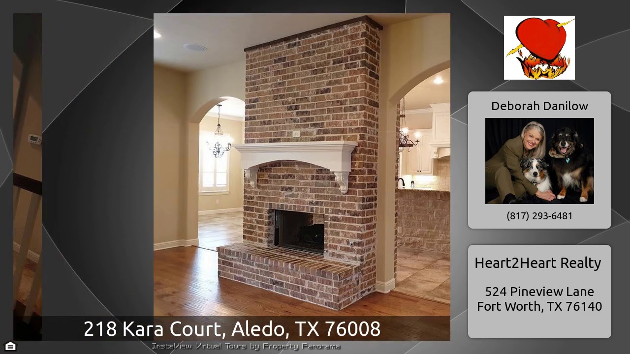 The Virtual Tour for the property at 218 Kara Court, Aledo, TX 76008 listed for $650,000: Other homes for sale by Deborah Danilow of Heart2Heart Realty: MAGNIFICENT CUSTOM HOME PRIVATE WOODED 1.95 Ac ALEDO ISD End of Cul-de-sac! Open View- Creek on property! 4-3.5-3; Plantation Shutters,Built-in Wall Shelves & Custom touches throughout home; Master w French Doors to Outdoor Living w FP, Heated Pool & Spa w Remote; 2Bdrm 2Full Bath down; 2 Dining; Butlers Pantry; 2 Living; Study; Up Living w Refrig & Sink;Hardwoods; Double FP serves Open living & Kitchen; NEW Carpet March 2020; NEW French …