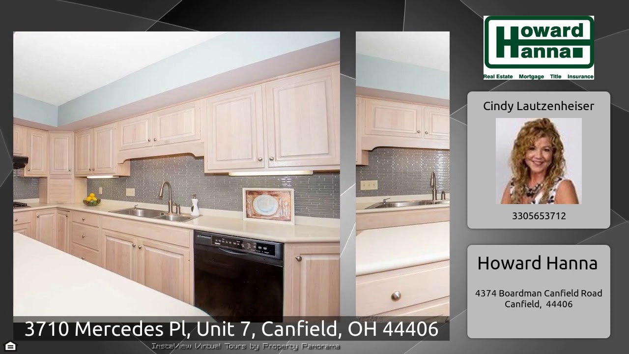 The Virtual Tour for the property at 3710 Mercedes Pl, Unit 7, Canfield, OH 44406 listed for $225,000: Other homes for sale by Cindy Lautzenheiser of Howard Hanna: Amazing Condo Boasting Upgrades Galore! Stunning Two Story Foyer showcasing an open staircase, hardwood flooring and abundant light. Formal Living Room or First Floor Office, Spacious Gourmet Kitchen abundance of cabinets, corian counter tops, island and appliances. Formal Dining Room, Great Room features gas log fireplace, french doors that lead to back deck and built-ins. Master Suite houses two walk-in closets and …