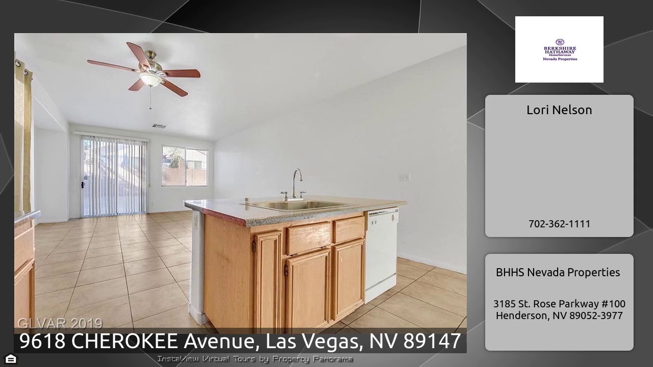 The Virtual Tour for the property at 9618 CHEROKEE Avenue, Las Vegas, NV 89147 listed for $315,000: Other homes for sale by Lori Nelson of BHHS Nevada Properties: PRICE REDUCED This 3 bed/2 bath home is move in ready!Relax on the front porch enjoying this gorgeous neighborhood with NO HOA fees! Beautiful tile throughout the home! This home is great for entertaining w/formal living/dining room area and family room. 2nd bedroom has french doors! Masterbath has brand new toilet. All appliances are included. Home is located near schools & shopping with an amazing view of the mountains. This home …