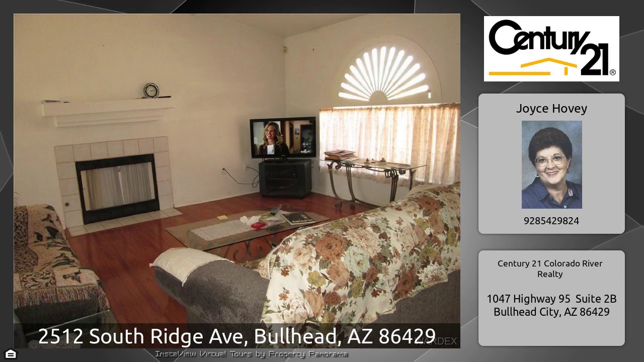 The Virtual Tour for the property at 2512 South Ridge Ave, Bullhead, AZ 86429 listed for $229,000: Other homes for sale by Joyce Hovey of Century 21 Colorado River Realty: This lovely 3 bedroom home is located on the 'perfect' lot with outstanding mountain views. Home faces north with RV or boat parking on the east, block wall surrounding the back yard with privacy and lots of room for enjoyment. Lovely master suite with French doors provides walk in shower, walk in closet, dual sinks, linen closet & more. 2 spacious guest rooms, open living area with fireplace, rear kitchen & dining area and …