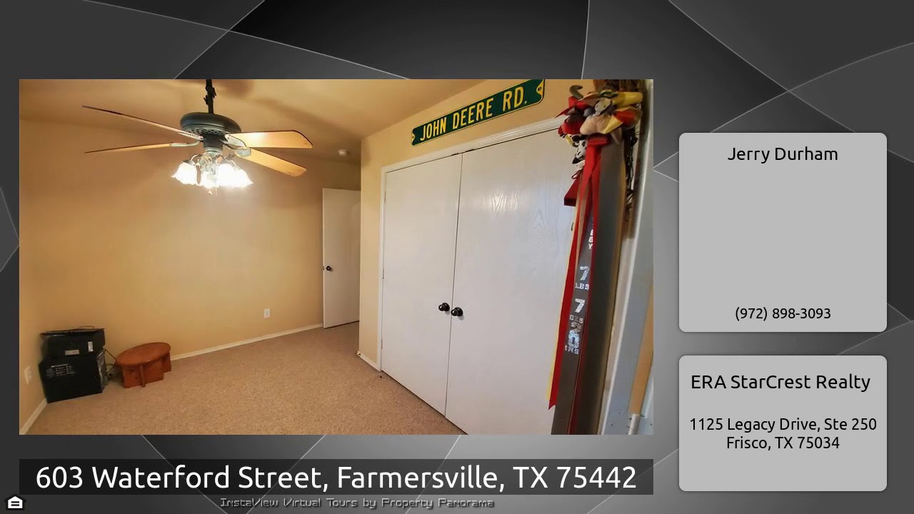 The Virtual Tour for the property at 603 Waterford Street, Farmersville, TX 75442 listed for $218,000: Other homes for sale by Jerry Durham of ERA StarCrest Realty: Enjoy the LARGE back yard, complete with covered patio and plenty of room for kids and pets! Close to the big city, but the serenity of a small town. Cute, 4 bedroom, 2.1 bath on quiet street. Great floor plan with first floor reserved for living and entertaining. Butlers pantry separates dining room from country kitchen. Spacious master bedroom has french door access to adjacent bedroom that could be a great nursery, sitting …