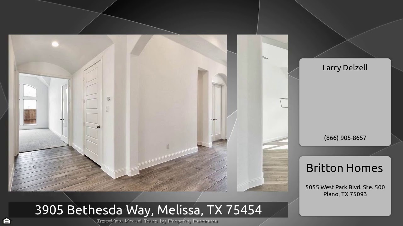 The Virtual Tour for the property at 3905 Bethesda Way, Melissa, TX 75454 listed for $401,900: Other homes for sale by Larry Delzell of Britton Homes: PERRY HOMES NEW CONSTRUCTION! READY FOR MOVE-IN! Library with French doors set at entry. Extended entry with 12-foot coffered ceiling leads to open family room with wall of windows and wood mantel fireplace. Formal dining room. Ceramic tile floors flow throughout. Game room with double doors and a walk-in storage closet. Family room flows into kitchen and morning area. Kitchen features island with built-in seating space. Spacious master …
