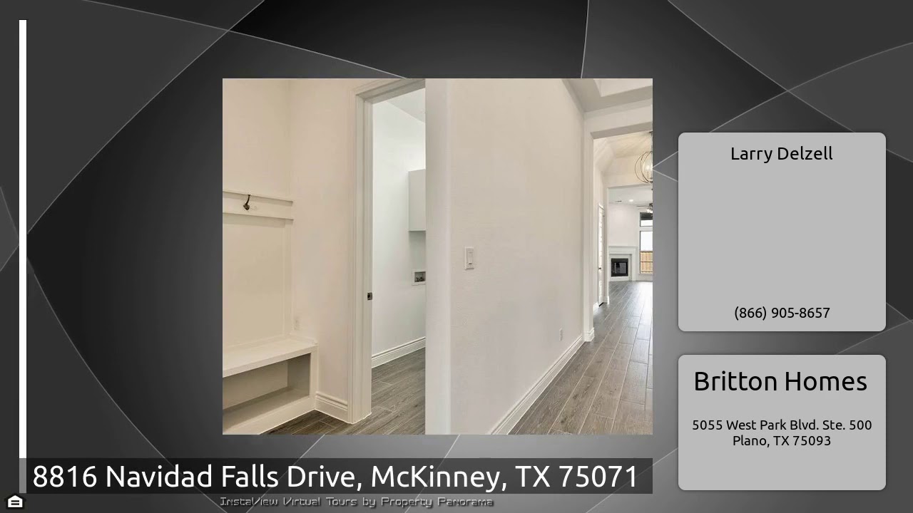 The Virtual Tour for the property at 8816 Navidad Falls Drive, McKinney, TX 75071 listed for $409,900: Other homes for sale by Larry Delzell of Britton Homes: PERRY HOMES NEW CONSTRUCTION READY FOR MOVE-IN! Library frames the entry with French doors. Kitchen features a long island with built-in seating space and large corner pantry. Dining area features large windows. Open family room with a wall of windows. Large master suite features three large windows and 12-foot ceilings. Double doors lead to master bath with dual vanities, a garden tub, a separate glass-enclosed shower with two …
