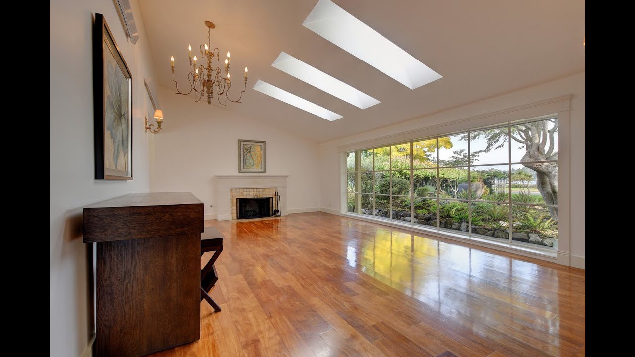 This charming, almost 3,000 sq. ft. bungalow, offers enticing ocean peeks. Floor-to-ceiling windows and multiple skylights bathe the home in all-day sunshine. Loved over the years, there are attractive original elements to give it character while some modern upgrades offer convenience. The light-filled spacious and elegant living room has a vaulted ceiling and attractive wood burning fireplace with natural gas igniter. A bank of French doors open up from the country style kitchen and dining room to the private sun-swept southwest facing paved patio. The master suite with ocean views is a generous size with updated ensuite bathroom and gas fireplace. The garage has been repurposed as a bedroom but could easily revert back.