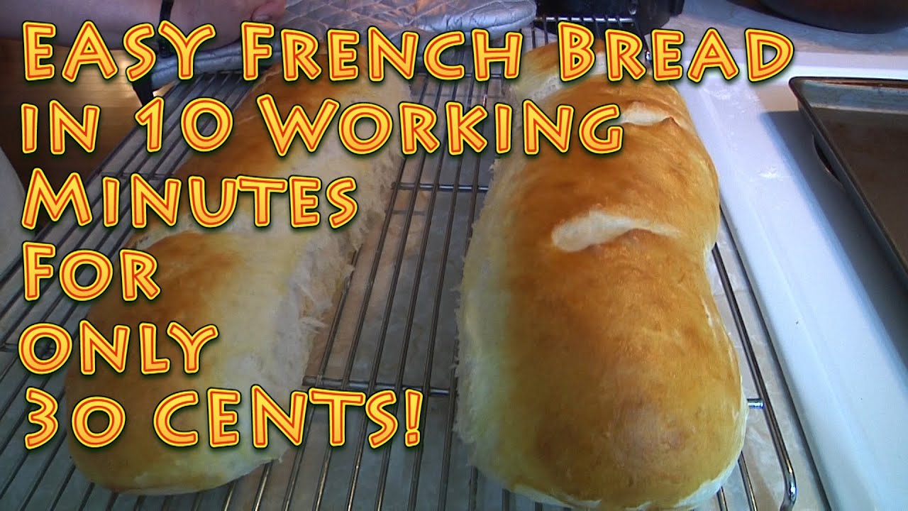 Get ready, get set, BAKE! Easy French Bread recipe and how-to that takes all of the mystery out of baking this super tasty bread. Only 10 minutes or less active working time. Make two huge 1.5 pound loaves for only about 30 CENTS!