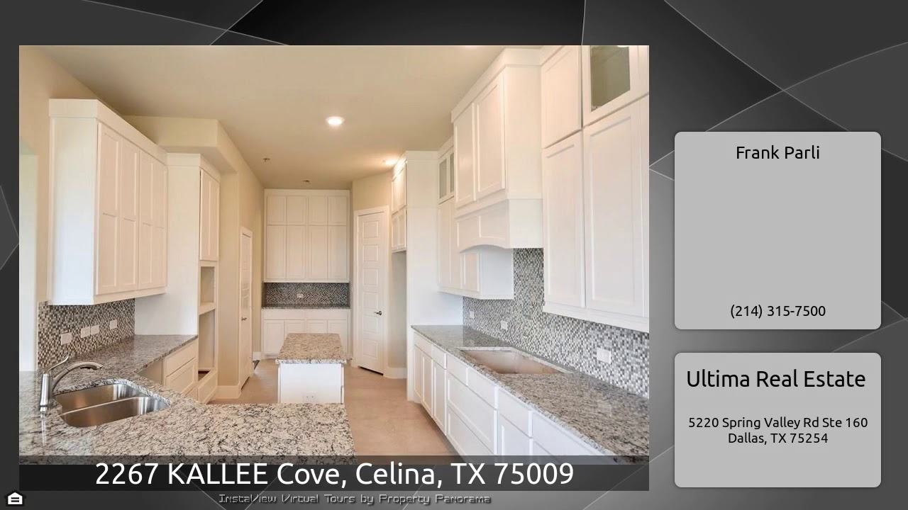 The Virtual Tour for the property at 2267 KALLEE Cove, Celina, TX 75009 listed for $469,000: Other homes for sale by Frank Parli of Ultima Real Estate: Brand New 1.5 STORY on 1 acre in Celina! No city taxes! Beautiful brick and stone combination. Fantastic layout features HUGE Formal Dining with Panned ceiling, large Study with French Doors, HUGE Family Room with 12' ceiling, 18' x 15' Master Bedroom with 12' ceiling and large closet, great Kitchen with Custom Cabinets and granite tops, 3 large bedrooms, and HUGE 21' x 19' Game Room up! Hardwood floors in Entry, Study, F.Dining, Family …