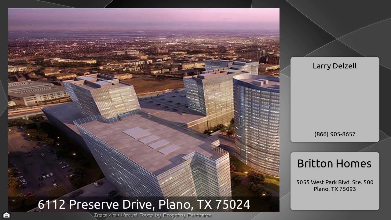 The Virtual Tour for the property at 6112 Preserve Drive, Plano, TX 75024 listed for $1,099,900: Other homes for sale by Larry Delzell of Britton Homes: BRITTON HOMES NEW CONSTRUCTION READY FOR MOVE-IN! This stunning 3-story home with an elevator backs up to park area. Living room with covered patio set at entry and a wet bar. Secondary bedrooms are located on the first floor along with the Library with French doors. Upstairs family room with access to covered balcony with outdoor grill. Media room and game room. Dining room. Kitchen features an island with built-in seating space and walk- …
