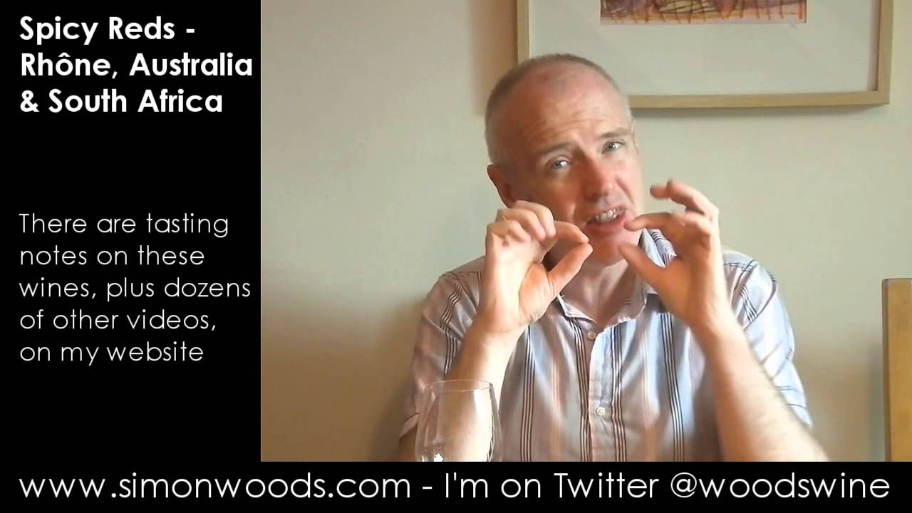 Seven spicy reds featuring Syrah and Grenache, five from the Rhone, one each from Australia & South Africa – Simon Woods grabs his glass and digs in