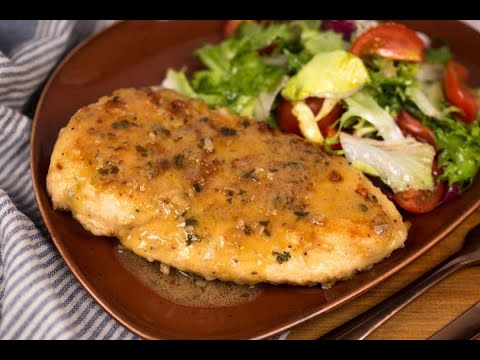 After around 30 seconds, whisk in lemon juice and wine/water. Boil the sauce down until it thickens, Season with salt and pepper to taste, and add chicken pieces back. Cook them in the sauce for around a minute, then serve right away.
