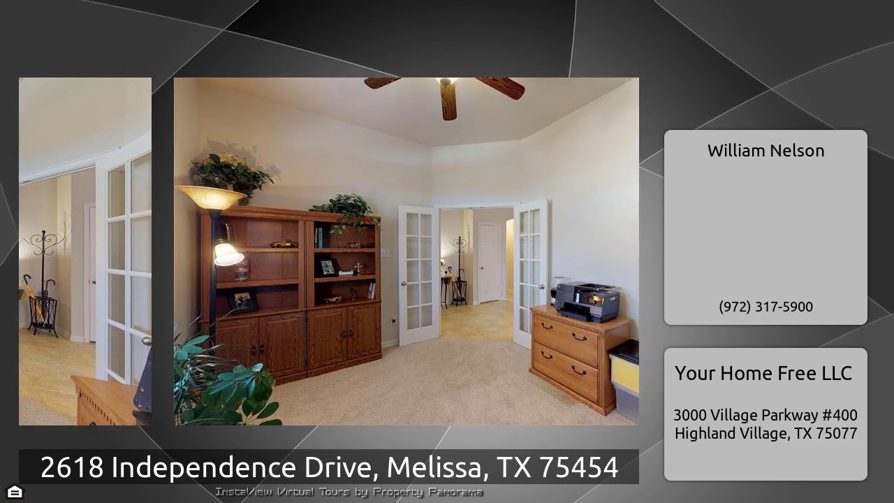 The Virtual Tour for the property at 2618 Independence Drive, Melissa, TX 75454 listed for $279,990: Other homes for sale by William Nelson of Your Home Free LLC: **3D WALK-THRU**Immaculately maintained 1.5-story Highland home backing to GREENBELT in Liberty of Melissa! Inside this open plan you will find 3 bedrooms, 3 full baths, formal dining area, an executive study with French doors, upstairs game room, and 2-car garage! Upgrades throughout include beautiful ceramic tiling wet areas and plush carpeting, a cozy floor-to-ceiling brick fireplace, vaulted ceilings, new roof 2017, HUGE …